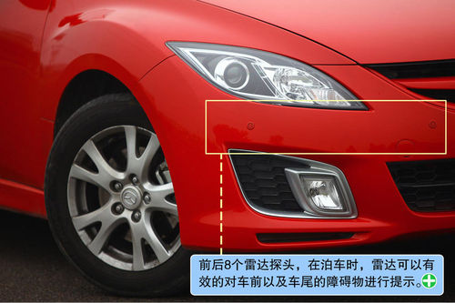 前后8个雷达探头确实是个很实用的配置,在泊车时,雷达可以有效的对车前以及车尾的障碍物进行提示,对于家庭用户起到了很大的帮助。